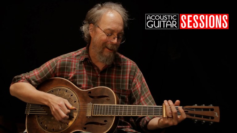 Myers stopped by the Acoustic Guitar offices near San Francisco while touring with his latest record, Yellow Peril. He played intricate, yet driving fingerstyle, on his Mavis resonator from Mule Guitars, stomping along with fervor.