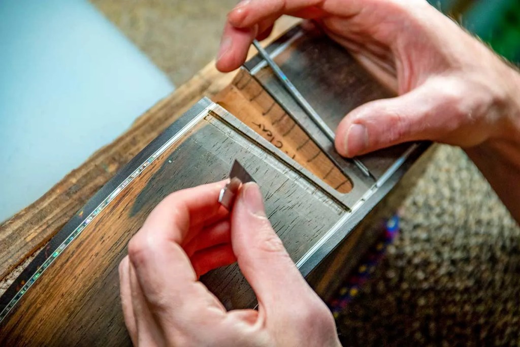 “Ever since I started getting wood for guitars, I’ve come across pieces that were just too good to use and set them aside for later,” says Hoover, 74. “And now that it’s later, I wanted to do something with this legacy and make some guitars using not just the prettiest but the rarest, the most unobtainable and irreplaceable stuff.”