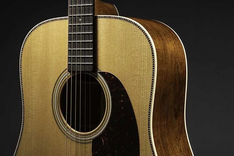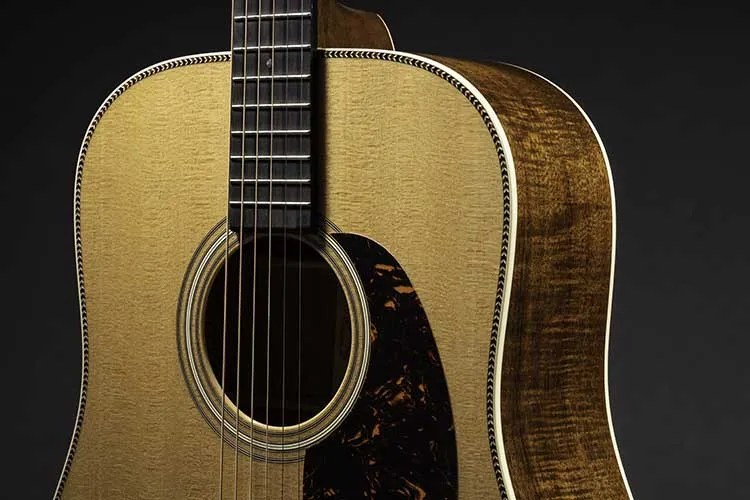 BODY 14-fret super dreadnought body; VTS (Vintage Tone System) Sitka spruce top; scalloped X-bracing; three-piece Guatemalan rosewood or koa back and sides; ebony bridge; drop-in saddle with 2-5/32″ string spacing; tortoise pattern pickguard; gloss finish