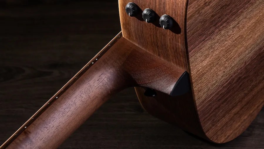Materials include a Sitka spruce top and solid walnut for the back and sides, with Taylor’s V-Class interior bracing. Taylor says its designers chose walnut for its midrange. And as we’ll see, they’re not wrong.