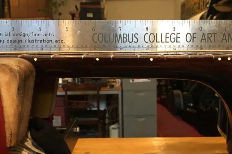 Don’t let these words make you feel panicked: lots of great guitars, including most vintage Martins, end up needing their neck angle reset over the course of their life. Thinking about price, remember that a reset is a major repair, and some shops always do a refret at the same time. This makes it a hard repair to price, as it could run anywhere from $350 to $1,000.
