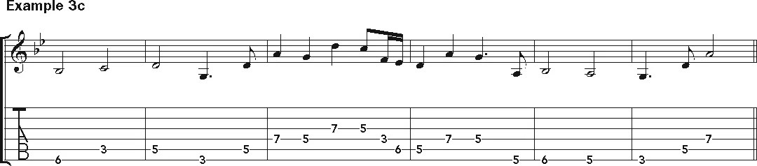Take, for instance, a Bb major scale in third position. Instead of ascending and descending the scale in steps, as in Example 3a, play each note and then the note a fifth above (or below, on the way down). So by scale degree, play 1–5, 2–6, 3–7, 4–1, 5–2, 6–3, and 7–4; descending, play 1–4, 7–3, 6–2, etc., as in Example 3b. This exercise, Wyslouch says, helps you get this interval under your fingers and into your ear.